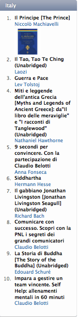 Pubblichiamo la classifica degli audiolibri più venduti su iTunes Store nella settimana dal 18 al 24 luglio. I dati sono quelli pubblicati ufficialmente da Apple nella pagina iTunes Store Top 10 Audiobooks.