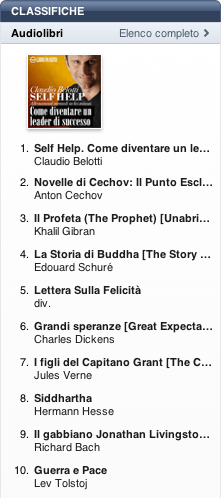 Pubblichiamo la classifica degli audiolibri più venduti su iTunes Store nella settimana dal 24 al 31 ottobre 2011. I dati sono quelli pubblicati ufficialmente da Apple nella pagina iTunes Store Top 10 Audiobooks.