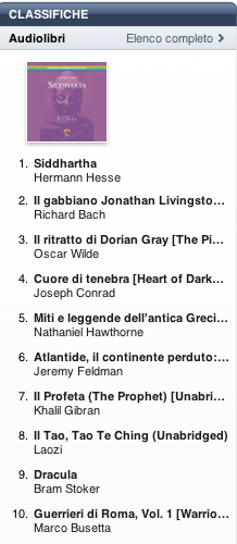 Pubblichiamo la classifica degli audiolibri più venduti su iTunes Store nella settimana dal 7 al 14 novembre 2011. I dati sono quelli pubblicati ufficialmente da Apple nella pagina iTunes Store Top 10 Audiobooks.