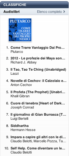 Pubblichiamo la classifica degli audiolibri più venduti su iTunes Store nella settimana dal 14 al 21 novembre 2011. I dati sono quelli pubblicati ufficialmente da Apple nella pagina iTunes Store Top 10 Audiobooks.
