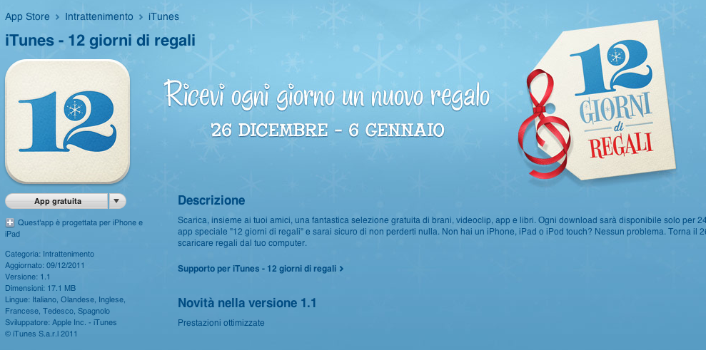 Ecco il link per scaricare l’applicazione 12 giorni di regali dall’App Store.