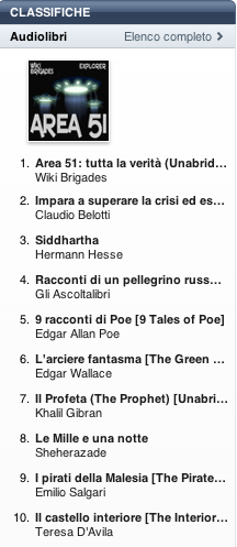 Pubblichiamo la classifica degli audiolibri più venduti su iTunes Store nella settimana dal 12 al 19 marzo 2012. I dati sono quelli pubblicati ufficialmente da Apple nella pagina iTunes Store Top 10 Audiobooks.