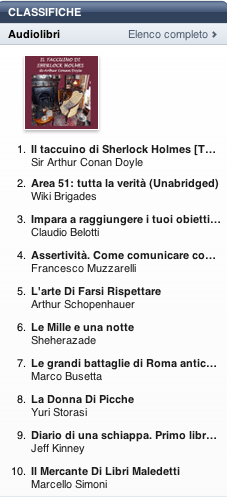 I dati sono quelli pubblicati ufficialmente da Apple nella pagina iTunes Store Top 10 Audiobooks.