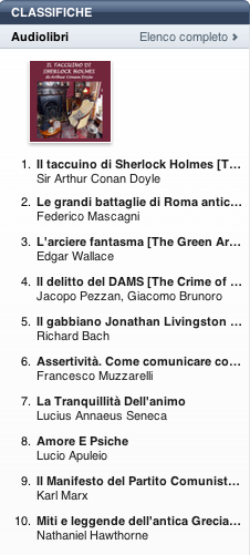 I dati sono quelli pubblicati ufficialmente da Apple nella pagina iTunes Store Top 10 Audiobooks.