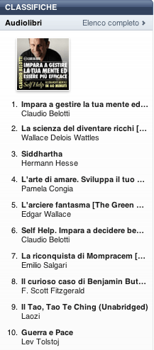 Pubblichiamo la classifica degli audiolibri più venduti su iTunes Store nella settimana dal 13 al 20 agosto 2012.