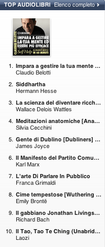 Pubblichiamo la classifica degli audiolibri più venduti su iTunes Store nella settimana dal 17 al 24 settembre 2012. I dati sono quelli pubblicati ufficialmente da Apple nella pagina iTunes Store Top 10 Audiobooks.