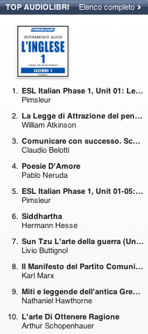 Pubblichiamo la classifica degli audiolibri più venduti su iTunes Store nella settimana dall’8 al 15 ottobre 2012. I dati sono quelli pubblicati ufficialmente da Apple nella pagina iTunes Store Top 10 Audiobooks.
