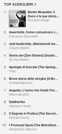 Pubblichiamo la classifica degli audiolibri più venduti su iTunes Store nella settimana dal 9 al 16 dicembre 2013