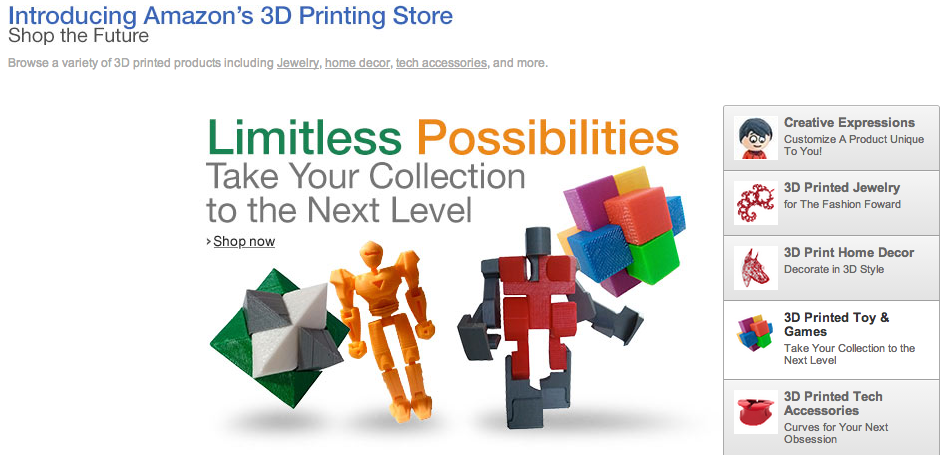 Amazon's 3D Printing Store, ecco lo store dei prodotti che non esistono