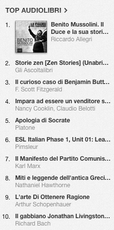 I dati sono quelli pubblicati ufficialmente da Apple nella pagina iTunes Store Top 10 Audiobooks.
