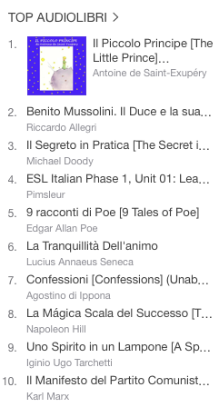 I dati sono quelli pubblicati ufficialmente da Apple nella pagina iTunes Store Top 10 Audiobooks.
