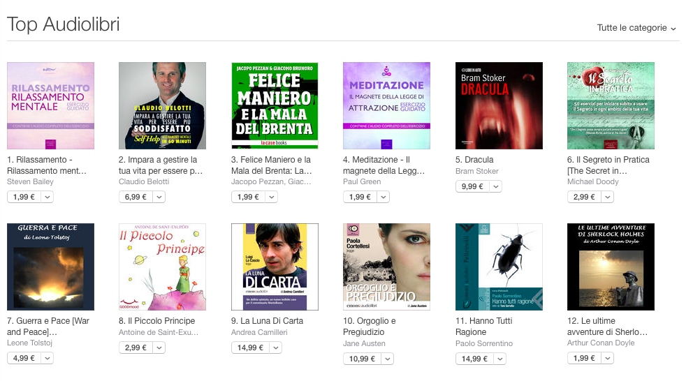 PUBBLICHIAMO LA CLASSIFICA DEGLI AUDIOLIBRI PIÙ VENDUTI SU ITUNES STORE NELLA SETTIMANA DAL 10 AL 17 AGOSTO 2015