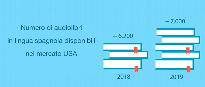 L’esplosione degli audiolibri nel mercato statunitense (da 7 anni il settore continua a registrare tassi di crescita a doppia cifra) ha fatto sì che anche gli editori USA abbiano deciso di investire nella produzione di nuovi titoli in lingua spagnola.