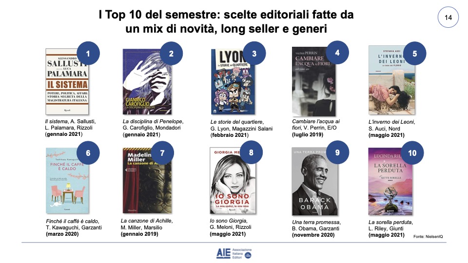 Chiudiamo con la top10 dei libri più venduti in Italia nel primo semestre 2021, un mix di novità, long seller e generi molto diversi tra loro, a ulteriore testimonianza della vitalità del settore.