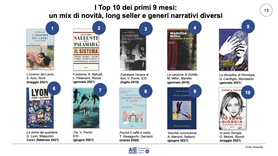 La classifica dei primi dieci libri più venduti contiene significativamente al suo interno titoli pubblicati nel 2019 e nel 2020, a sfatare il mito secondo cui un libro “resiste” sul mercato solo pochi mesi.