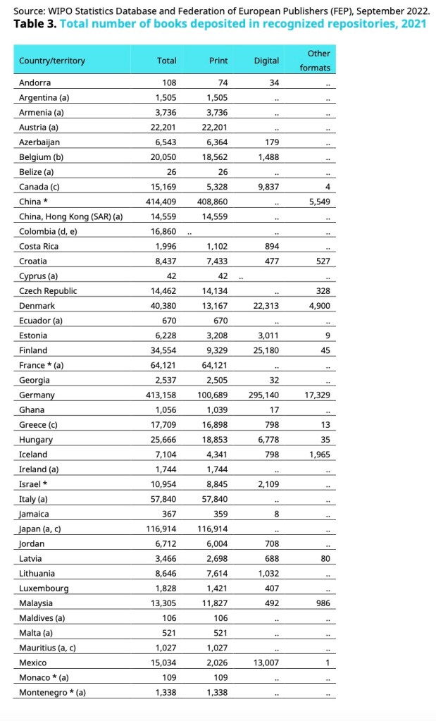 In tutto il mondo il numero dei titoli pubblicati è in crescita, con il Regno Unito che è al primo posto con ben 167.267 titoli pubblicati nel 2021 (e comunque si parla di un caldo el 10% rispetto al 2020).